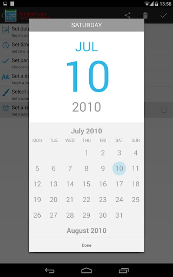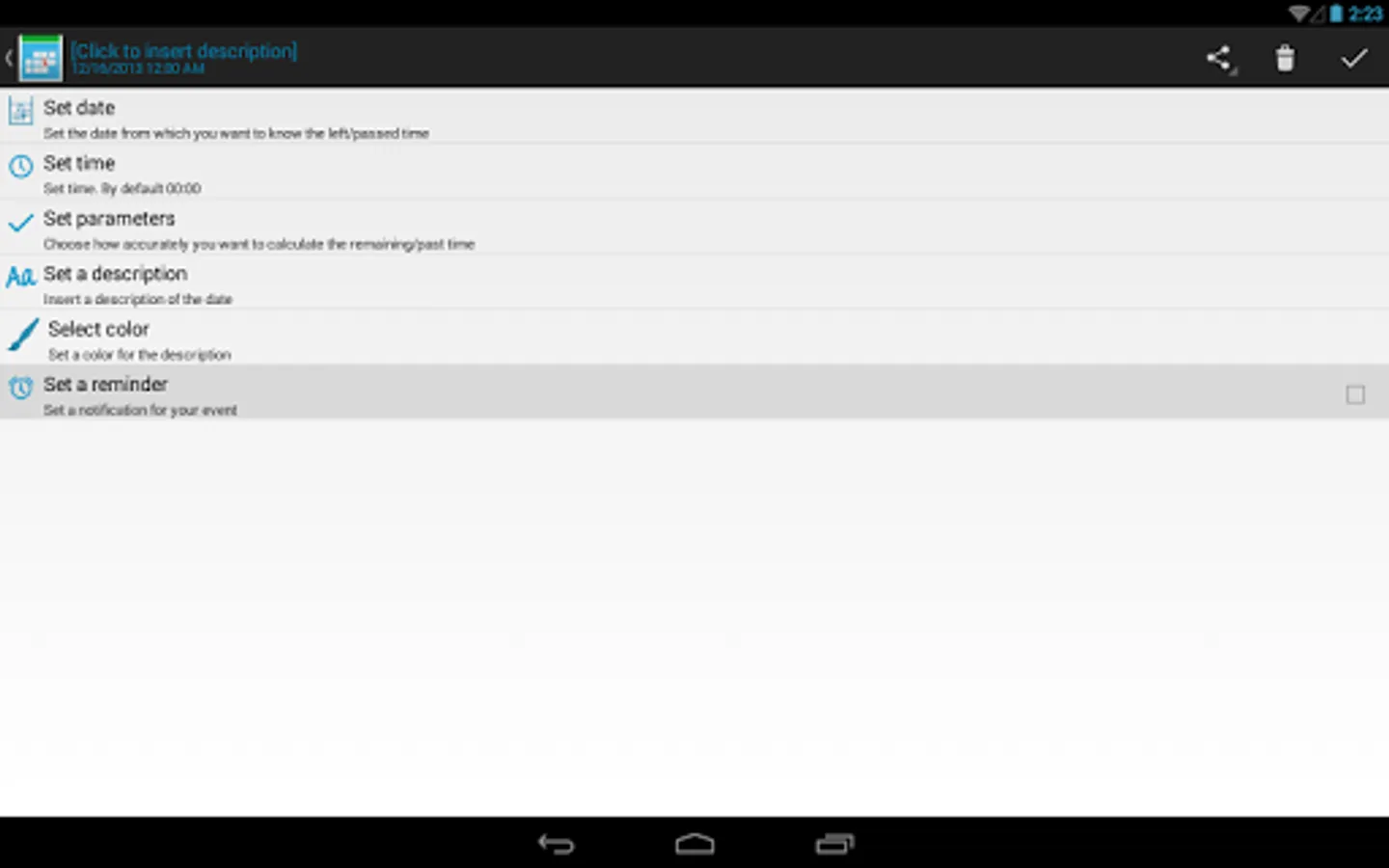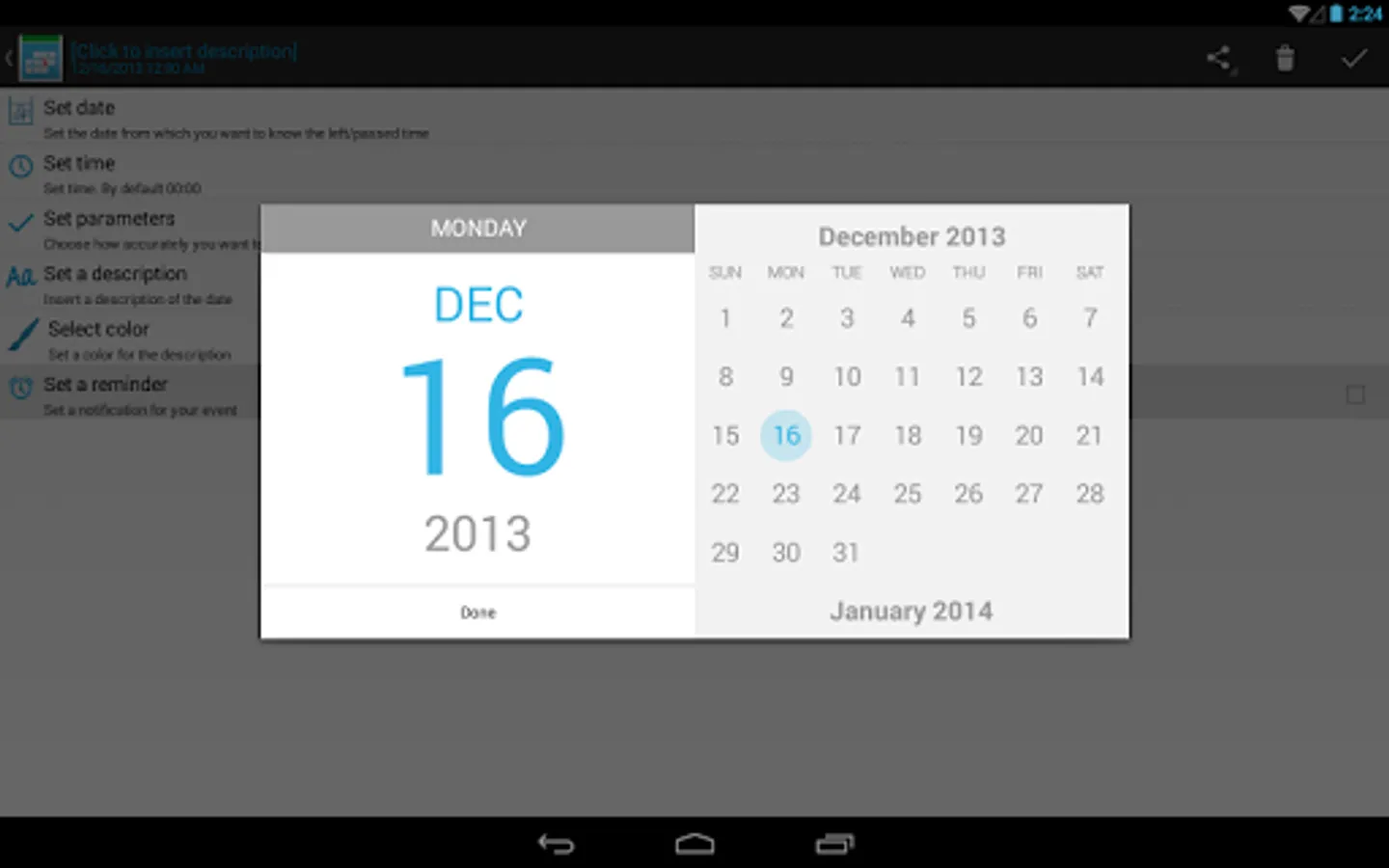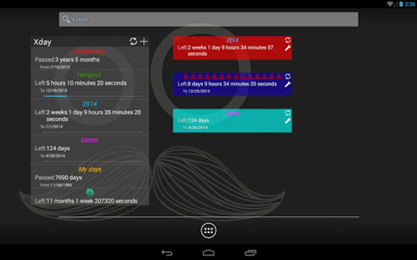Calculating days left to an event will not be a problem anymore and you can check them using the widget included in the app.