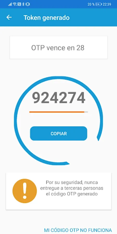 With this application, the OTP code can be generated for the approval of any action that is considered risky, such as entering the site, transfers, or other actions that require greater security.