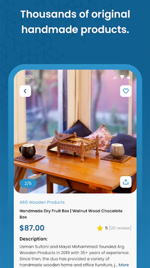 1. Buy Good: Aseel Buy Good enables people worldwide to buy handmade crafts and gifts directly from vendors in underdeveloped countries, the products on Aseel from Afghanistan and Turkey are unique and one of a kind. The platform allows artisans to easily sell authentic handmade items such as wooden goods, carpets & rugs, home décor, artwork, leather goods, ceramics, jewelry, accessories, and other custom products. Each purchase via Buy Good platform directly empowers an artisan who made these fantastic and credible handicrafts with love.