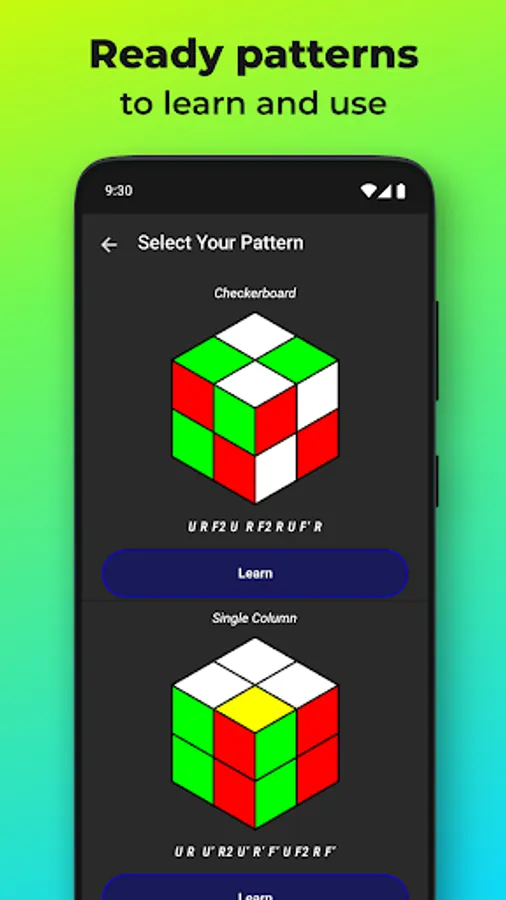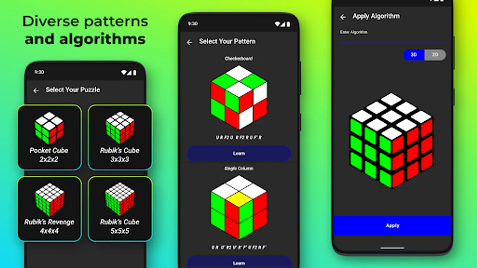 Our app also includes a variety of algorithms that you can use to solve your puzzle, as well as a selection of Rubik's Cube patterns to try out. And if you're feeling particularly ambitious, you can even test out more advanced puzzles like the Professor's Cube 5x5x5, the V-Cube 6 6x6x6, and the Megaminx.