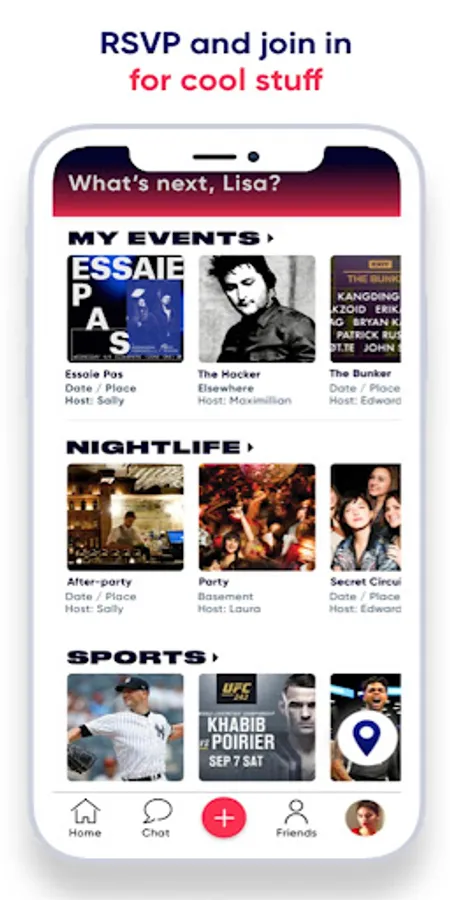Create a profile and put in the stuff you’re into, then check out what’s going on and who’s up for it. If you’ve got an idea that’s not on there yet, pop it in and invite the people you want to go with, whether that’s just your close friends, brand new people or anyone in between. Once people start RSVPing, chat just with the people going (no more getting fifty group chat messages about something you’re not going to; trust us, we’ve thought of everything). Then head out and have fun.