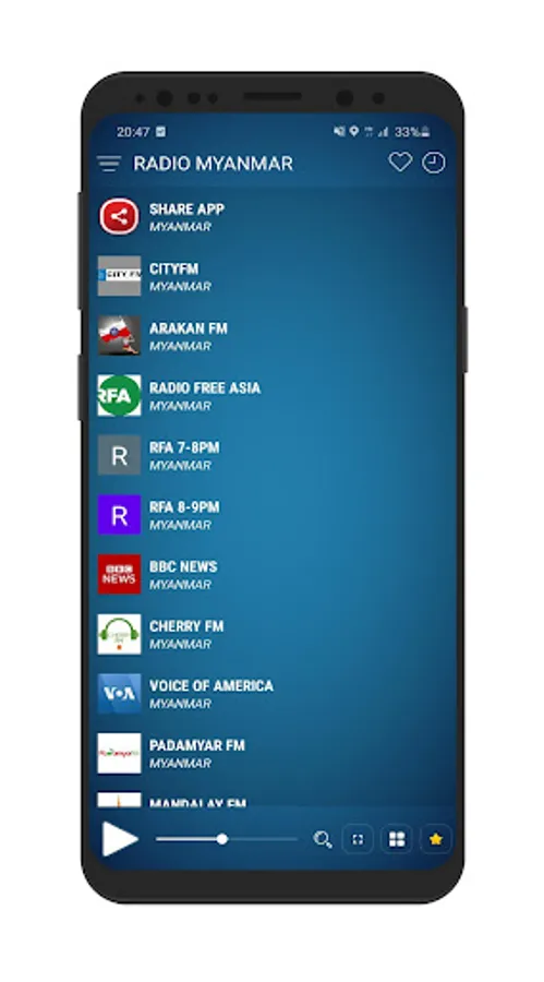 Myanmar radio fm is an app enabling you to listen to all top myanmar radio stations easily.