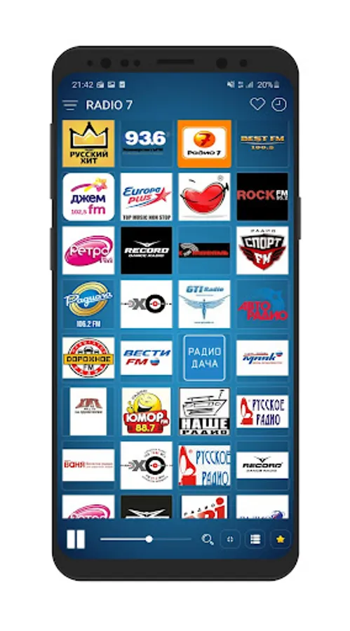 Listen to all your favorite radio stations like AutoRadio, Dacha, Europa Plus, Retro FM, Russian radio, Radio Energy, Radio 7, Humor FM, Love Radio, New Radio, Relax FM, Comedy Radio, Vania, Nashe radio, Maximum, Radio Chanson, Hit FM, Romantika, Silver Rain, Radio Monte Carlo, Piter FM, Chocolate, Radio Siberia, Pioneer FM, Radio Hermitage, Zhara FM, Russian Hit, Radio Carnival, Capital FM, Radio Vera, Popular Internet radio stations, Record Radio, DFM, PromoDJ, Zaycev FM, Like FM, Classic, Marusia FM, Radio Jazz, Taxi FM, Rock FM, Eldoradio, Keks FM, ULTRA, Russian Rock, Megapolis, Vysotsky, Hype FM, Monte Carlo Bossa Nova, Best FM, Radio Iskatel, Moscow FM, TNT Music