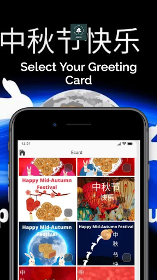The Mid- Autumn Festival 中秋节 is a time for friends and family to gather outside to eat mooncakes, watch the moon, and carry brightly lit lanterns, which represent harmony and unity. Why not utilise this free Mid-autumn 中秋节 app as part of the celebration? It includes a selection of attractive greeting card to choose from.