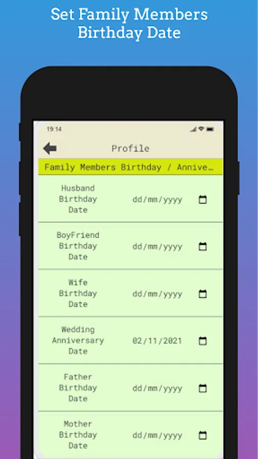 ⭐ Profile - To let you key-in All Family Birthday Date when app users create a user login and password to access other features of the Apps
