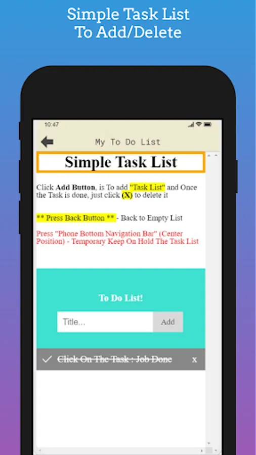 ⭐To Do List - Simple To Do Task List. You can add the task list and delete it once it is done.