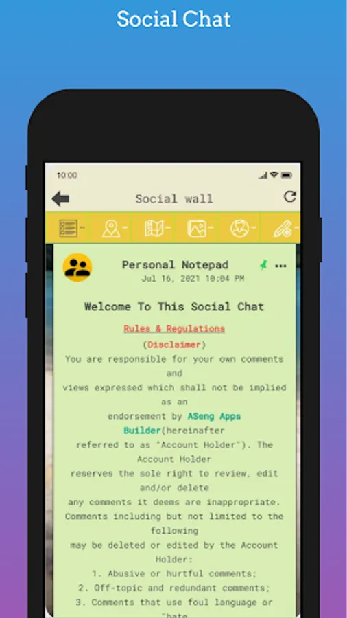 In short, it allows you to create a contact page for your business and anything you intend to be contactable. Users are able to create either a news wall or a social wall inside their app. Users can like and comments to your post or not is up to you. Updated with uploading of images, location & can do scheduling of posts using Event Calender feature.