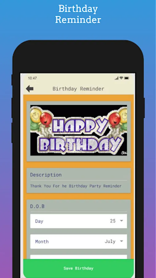 ⭐. Birthday - Allow you to set Birthday Reminder automatically.