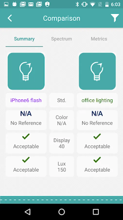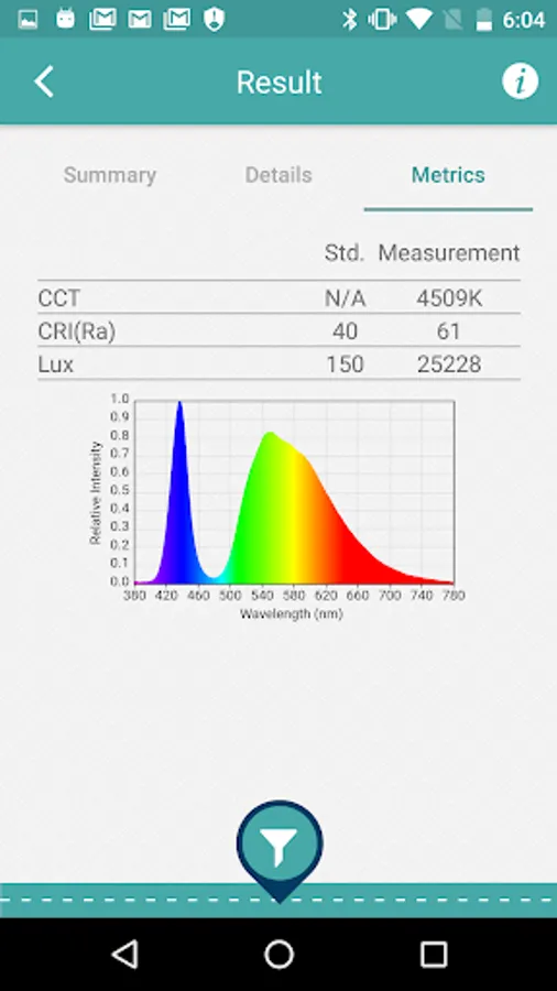 Users can rapidly acquire CCT, CRI, illuminance and spectrums by measuring light sources to understand basic information of specific light sources. You can compare the information with international lighting standards to assure quality.