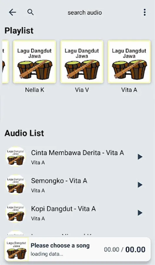 The song list above is from the Java Dangdut Songs Online application