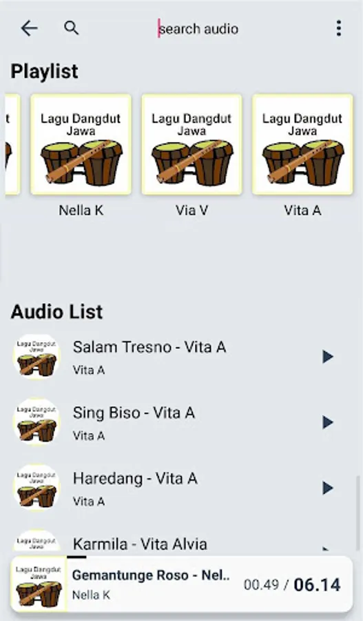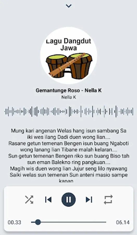 Java Dangdut Songs Online is a popular Javanese dangdut song player application today. Dangdut Jawa Online songs are sung by artists whose voice quality is extraordinarily good. Dangdut Jawa Online songs contain 50 mp3 Javanese dangdut songs, of course also accompanied by song lyrics. It's just that this Online Java Dangdut Song is online, but you will not spend a lot of quota to access this Online Javanese Dangdut Song.