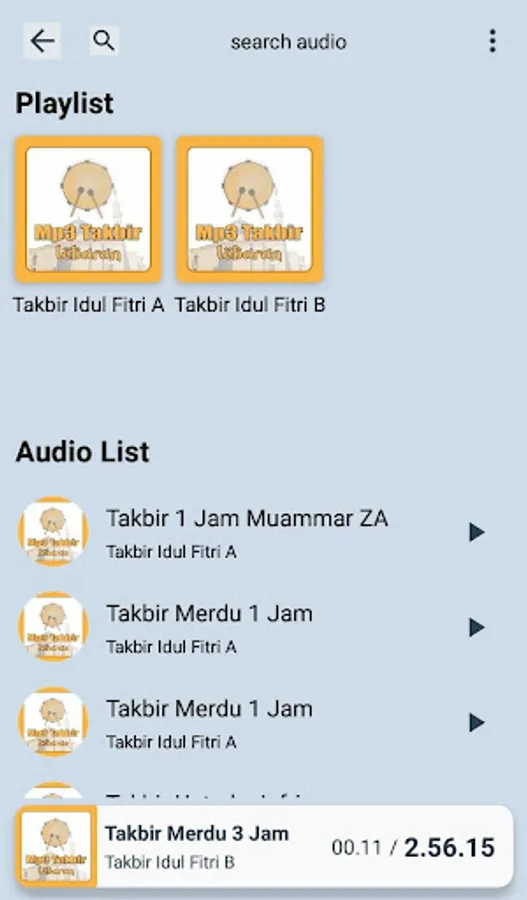 Gema Takbir Lebaran MP3 is also equipped with a minimalist appearance, there is a notification when you play the song Gema Takbir Lebaran MP3. Gema Takbir Lebaran MP3 also has a very small size, so you don't have to worry about storage space on your device. This MP3 Eid Takbir echo is very suitable for us to listen to when we celebrate Eid al-Fitr and Eid al-Adha.
