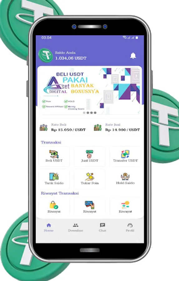 Aset Digital adalah aplikasi jual beli USDT (BEP20) yang Aman dan Terpercaya, tersedia untuk pengguna di Google Play. Dengan aplikasi ini, Anda dapat dengan mudah melakukan transaksi jual beli USDT, sebuah stablecoin yang bernilai tetap 1:1 terhadap dolar US. Aset Digital menawarkan pengalaman yang aman, cepat, dan nyaman dalam bertransaksi Jual maupun Beli.