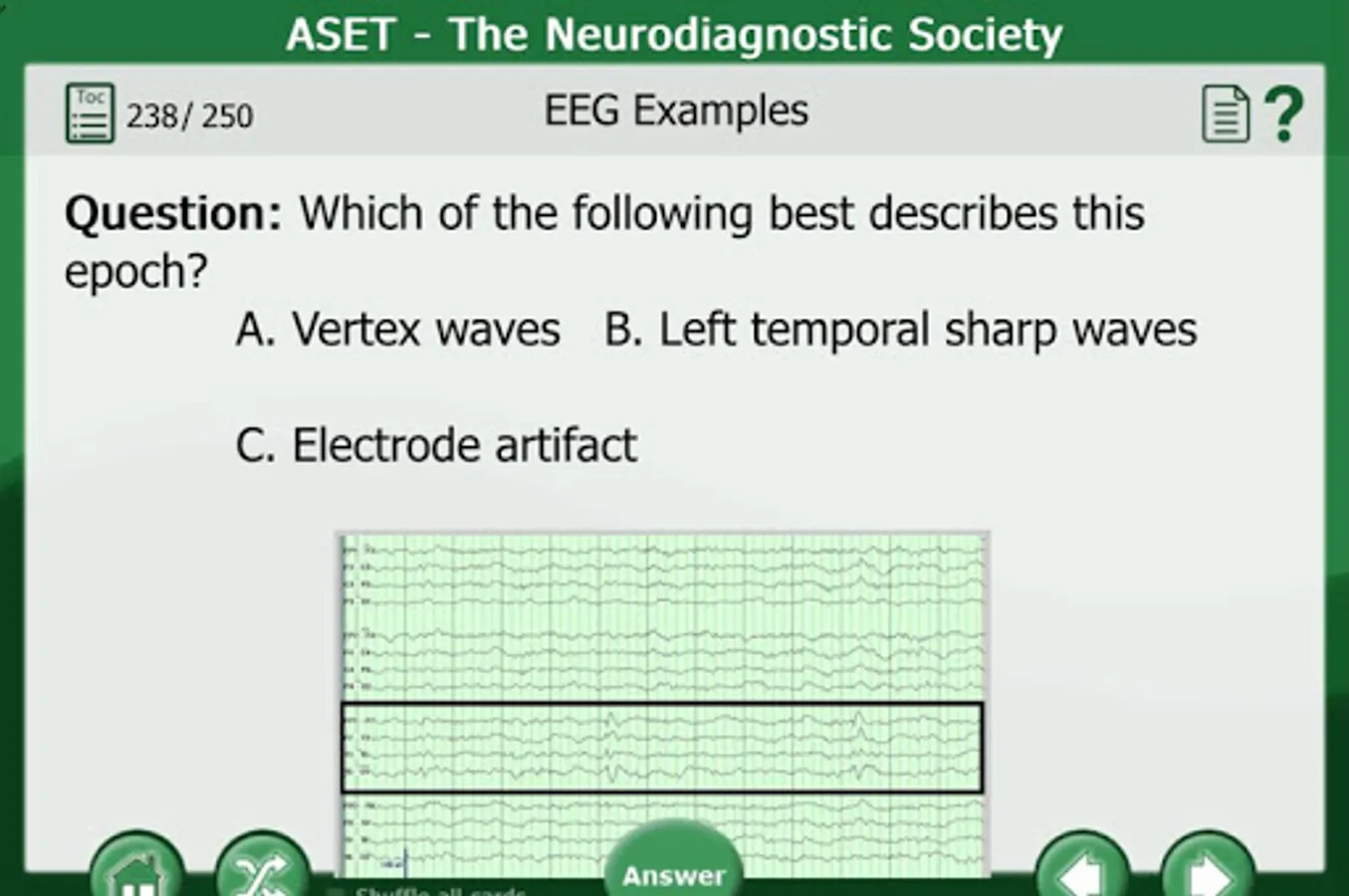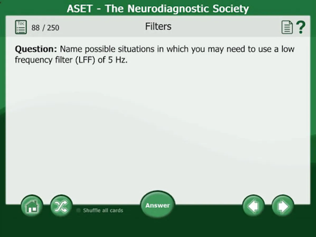 The EEG Flashcard App contains 250 Q&A categorized with supporting references in every fundamental EEG topic, such as neuroanatomy, ACNS guidelines, EEG instrumentation, filters, polarity, infection control, artifacts and much more. Convenient features of the app include swipe navigation, zoom function, shuffle by topic or shuffle all and a notes page unique to each question. This is a great way to prepare for the ABRET EEG board exam while on-the-go!