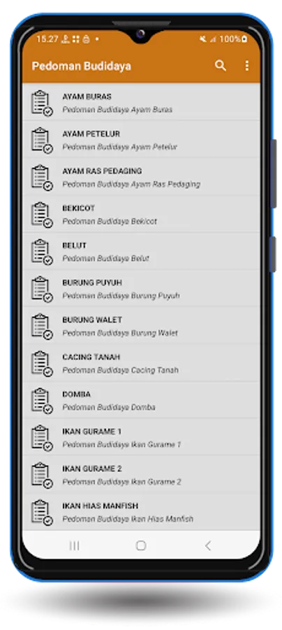 This application will explain the complete technical guidelines for the cultivation of types of animals / livestock, for example: cultivation of carp, catfish, tilapia, tilapia, catfish, ornamental fish, shrimp, free-range chicken, laying hens, snails, eels, quail, earthworms, rabbits, ducks / ducks, cows, sheep, honey bees, crickets and many more. Then for the types of fruit plants, vegetables, ornamental plants and medicinal plants, for example: cultivation of duku, avocado, dragon fruit, grapes, melons, oranges, apples, durian, guava, corn, mushrooms, basil, temulawak, ginger, eggplant, sweet potatoes, rice, watermelons, dahlias, orchids, gladiolus and many more.