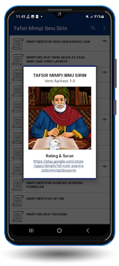 The interpretation of dreams according to Islam by Muhammad Ibnu Sirin presents interpretations of dreams that are in accordance with the Al-Qur'an and as-Sunnah. The presence of this application is intended so that every Muslim can act appropriately in accordance with religious law when addressing the dreams he is experiencing.