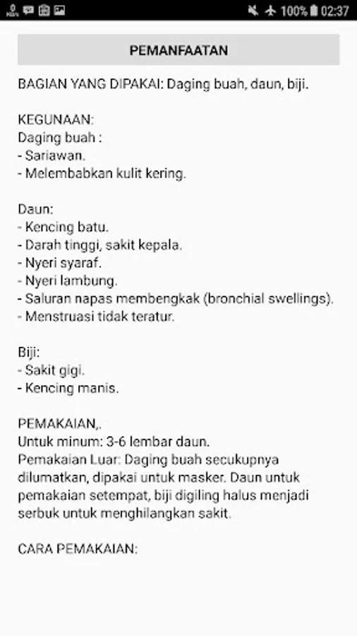 In this application you can also get alternative natural medicines from various types of medicinal plants, such as heart disease, stroke, cholesterol, cancer drugs, TB drugs / lungs, diabetes medications (diabetes / sugar), kidneys, gout, high blood pressure, hepatitis / liver, and other minor illnesses. In addition to treatment, herbal medicinal plants can also be used to maintain our health and fitness.