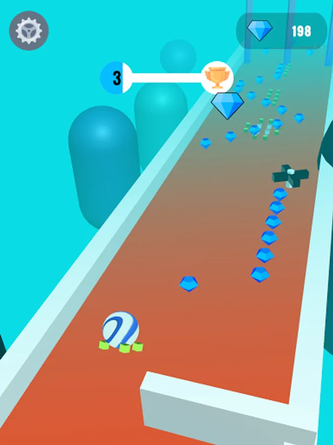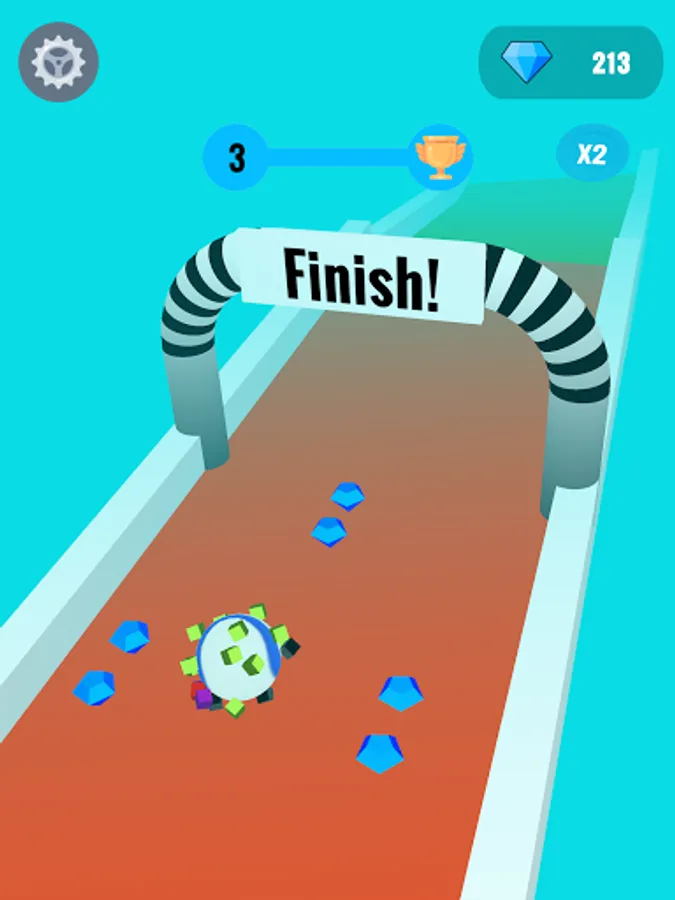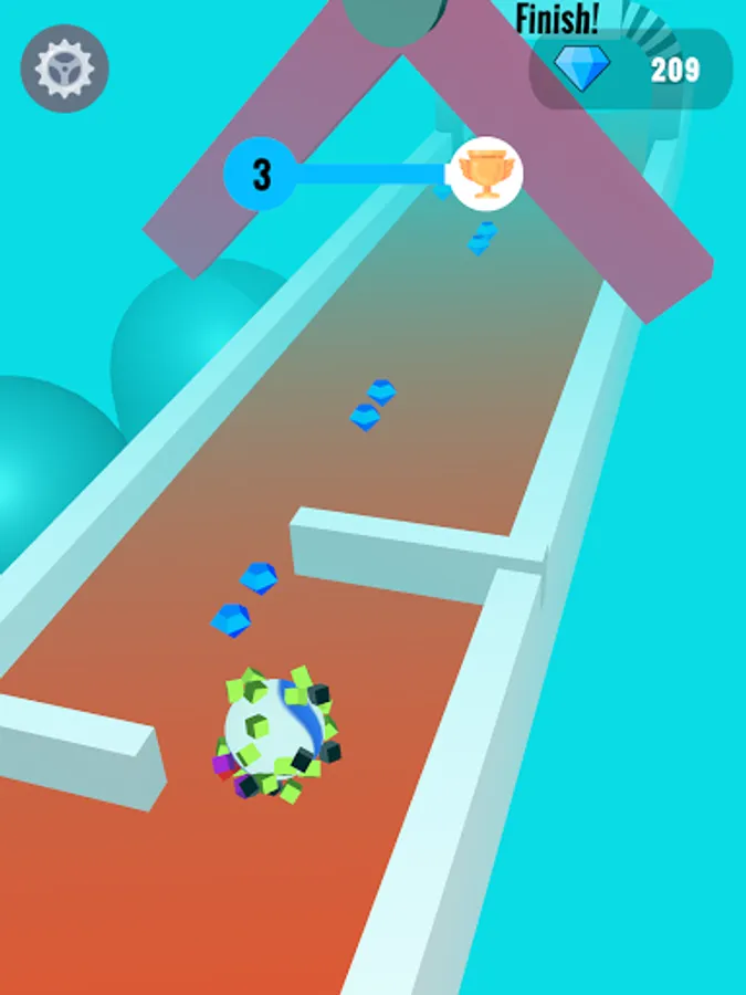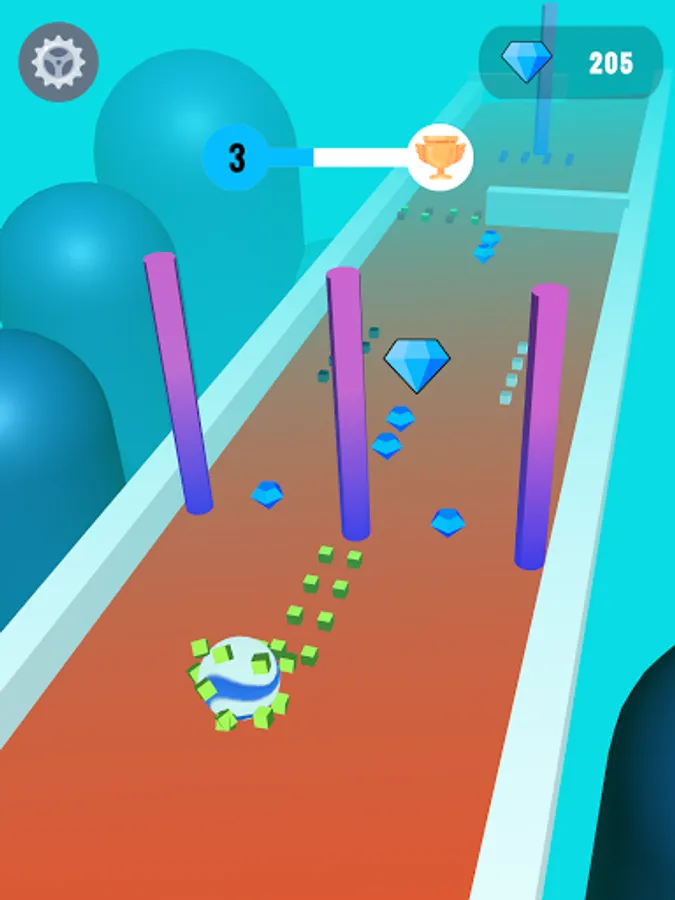 Run through the obstacle and collect all of them. If you hit one of them your size gonna be bigger. If you want to be a giant ball you need to collect more items. Are you ready for rush?