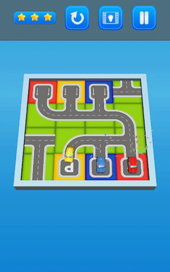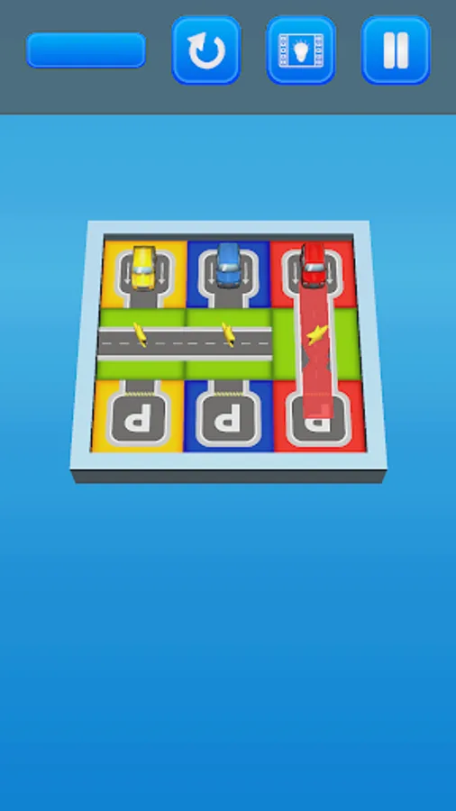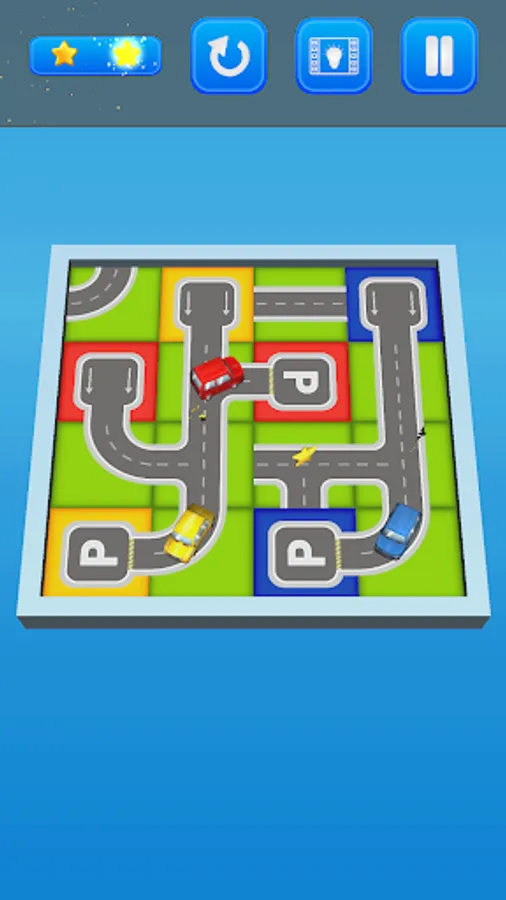 - Park blue to blue area, red to red and yellow car to yellow area.