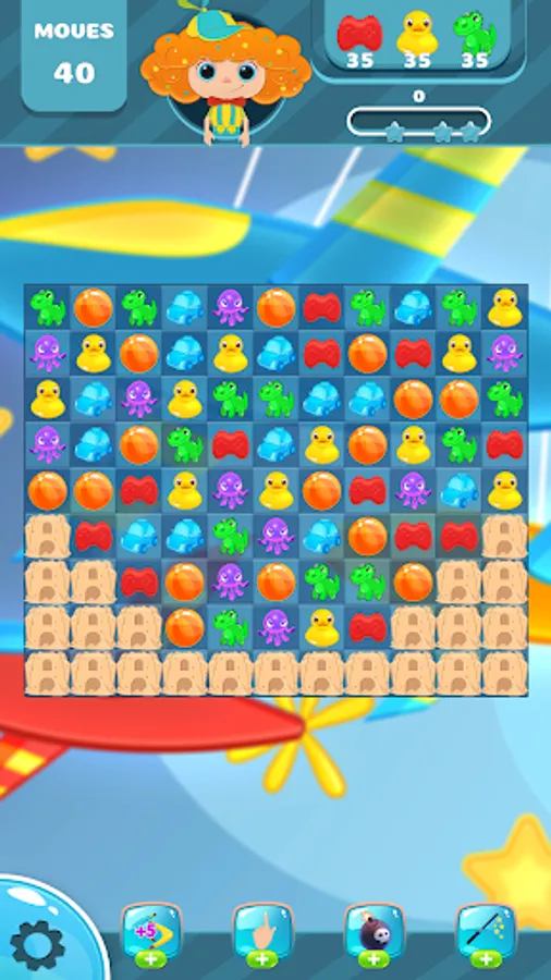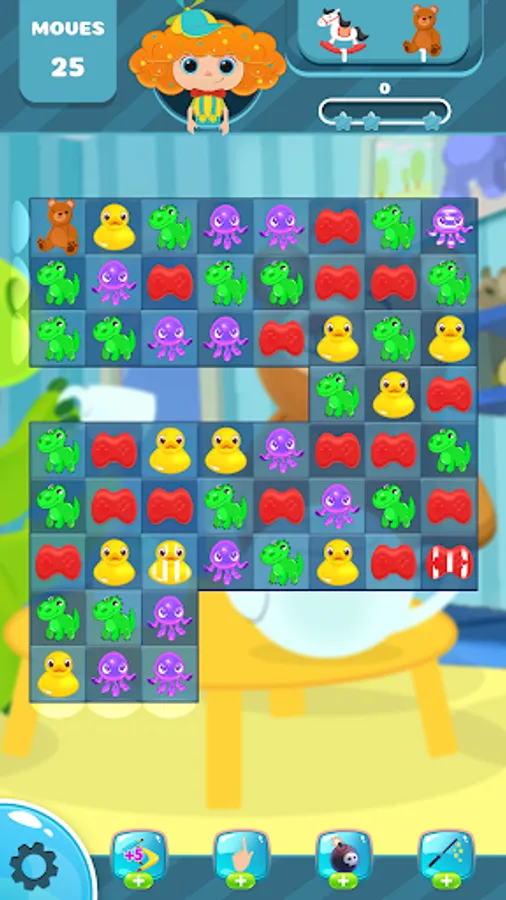 You are gonna be toys collector. Do not forget to math 3 toy to win game.