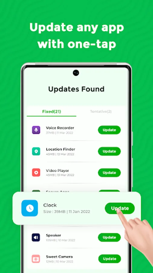 - Finds updates for all installed apps as well as system apps.