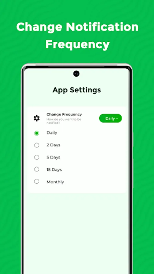 - Adjust notification frequency, Tell the app how often you would like to be notified.