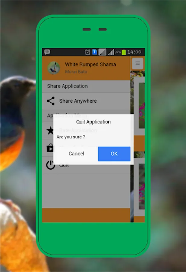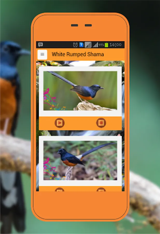 For bird lovers White-rumped Shama can download this app to train the bird White-rumped Shama favorite chirp faster, because in this application there are a few birds chirping White-rumped Shama.