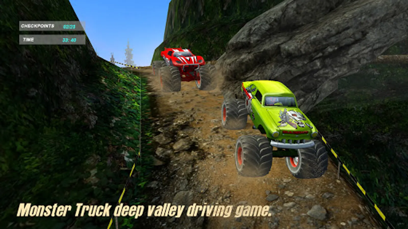 Get behind the wheels of huge monster trucks and drive thrugh steep valley roads, countryside rough tracks and rocky terrains. Drive some crazy 4x4 monster offroad trucks and reach the destination within the alloted time.