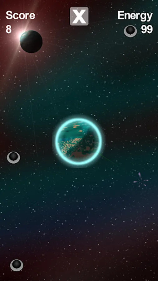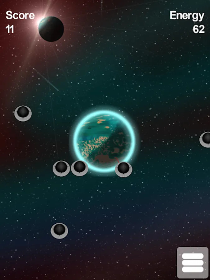 we have noticed that an alien space force is on its way to attack your planet. Protect and defend your valuable planet as long as you can. You can destroy the extraterrestrial ships with your laser. Tap on a spacecraft to set the laser mark.