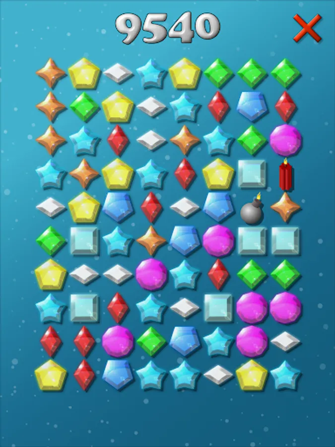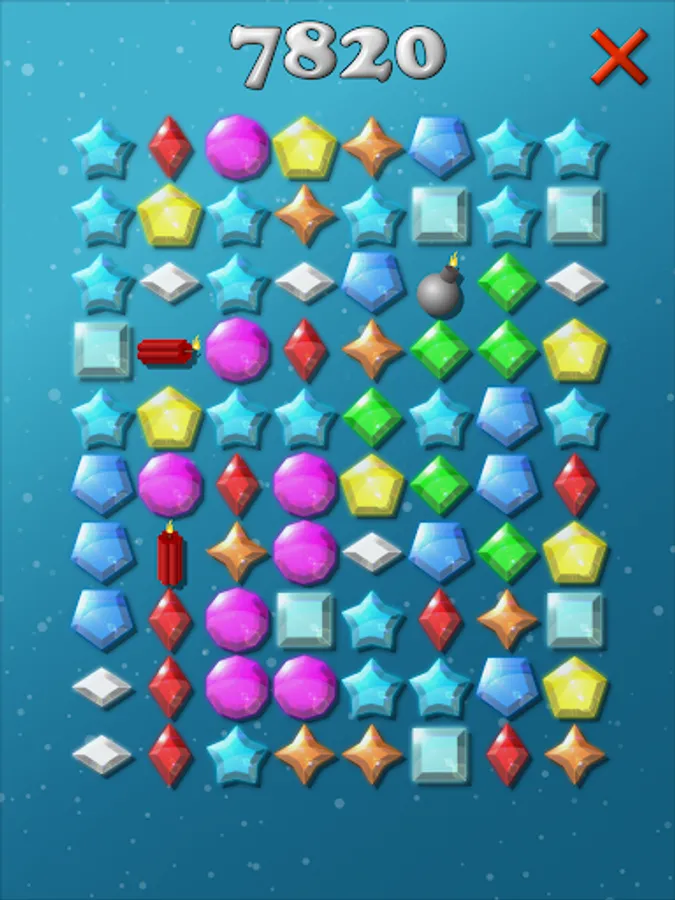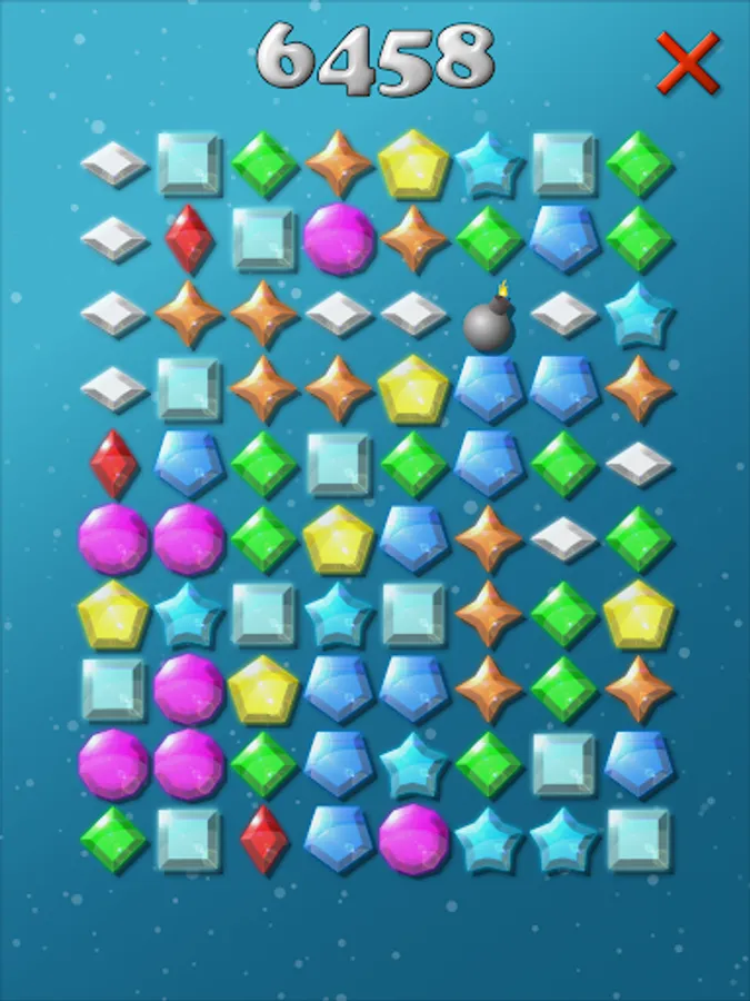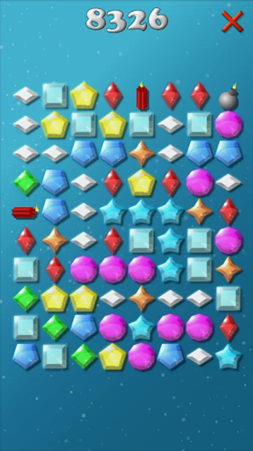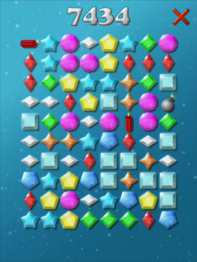 Many colorful diamonds are waiting to be collected by you. Tap two or more jewels of the same color and shape to collect them to increase your score. Click on the bombs to collect rows and columns quickly. If you click on a larger group of gems, then you become more points when you collect them.