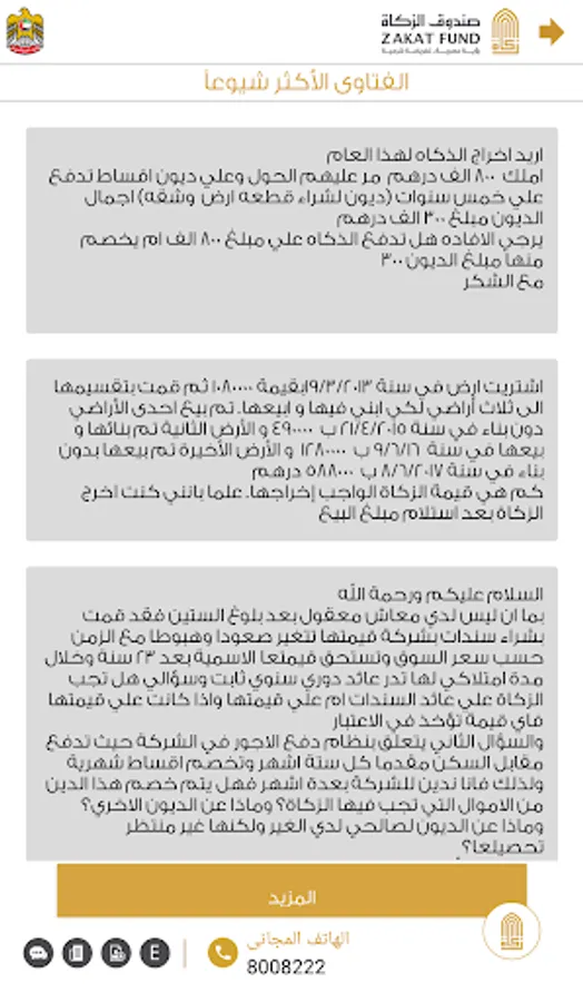 The Zakat Fund is an application for an authority specialized in Zakat aiming to increase awareness of Zakat and establish the concept of its effectiveness and importance of its role in the development field on the individual and society levels. It works to revive this duty in application and practice for the benefit of the various needy segments in accordance with Shari’a principles, known as the "Zakat" channels.