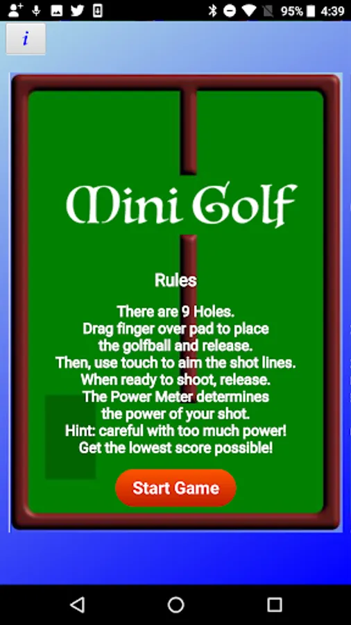 Play mini golf with this 9-hole miniature golf challenge. Tee up and go for the lowest score possible as you try to beat par on each hole. Be aware, the Power Meter controls the strength of your shot: not enough power and you fall short of the hole! Too much power and you over shoot. Have fun and good luck!