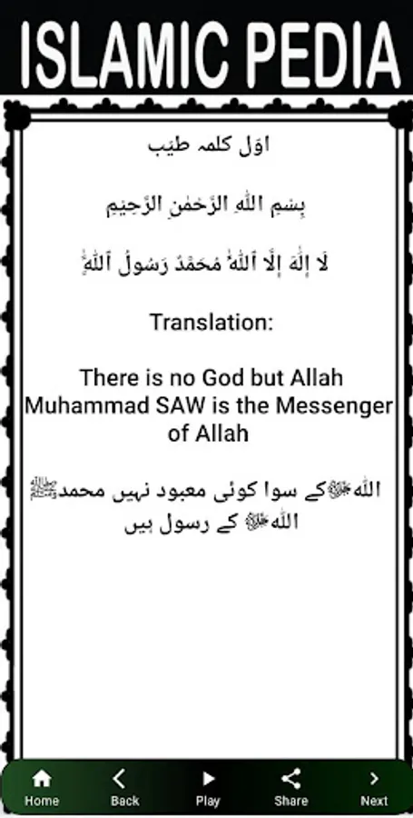 This app is a collection of 40+ authentic DUAS, NAMAZ & SIX KALIMS from holy Quran and Sunnah. This app has a simple, and elegant design with audio recitation and translation.