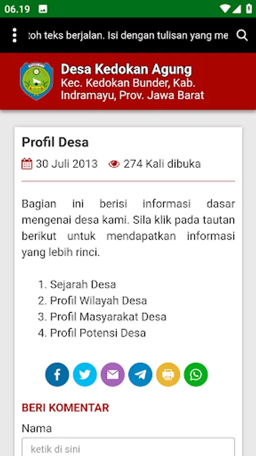 Ledig Kedokan Agung is a Village Information System application that can be used by Village communities to encourage the establishment of a centralized Digital Village between village communities and village officials. This application can be used by the village community as a trusted source of information from the village. besides that the village community can also access various services available in this application such as: village news, village community online shops, citizen self-service and so on.