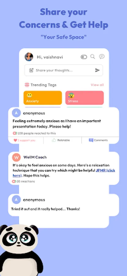 On WellM, you can be part of a community of your choice. We provide a safe space where you can express yourself freely (and anonymously if you like) and a chance for you to connect with others through our community feature, without feeling judged.