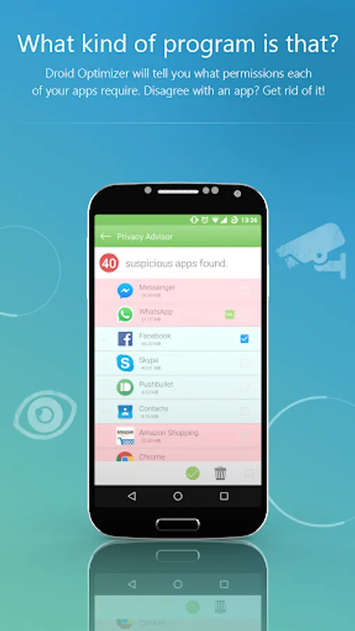 Browsing the Internet with your smartphone leaves various traces that can be used to violate your privacy. And let's face it, do you really know all the time what device permissions your installed apps have? Get rid of Internet traces and expose potential spy apps with Ashampoo Droid Optimizer.