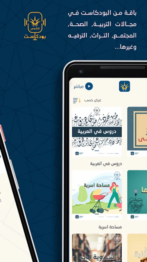 في تطبيق راديو الشمس يمكنك الاستماع للبث المباشر على مدار الساعة بالإضافة لباقة من الپودكاست في مجالات التربية، الصحة، المجتمع، العلوم، التراث والترفيه, وغيرها..