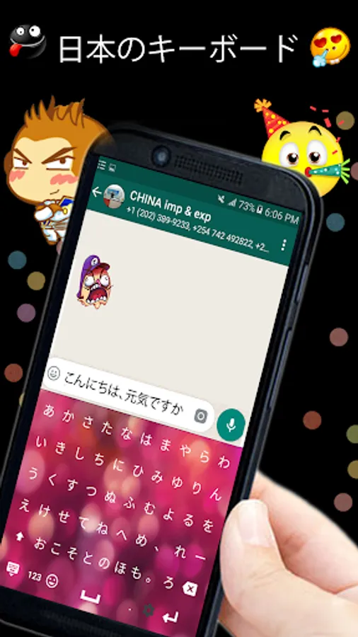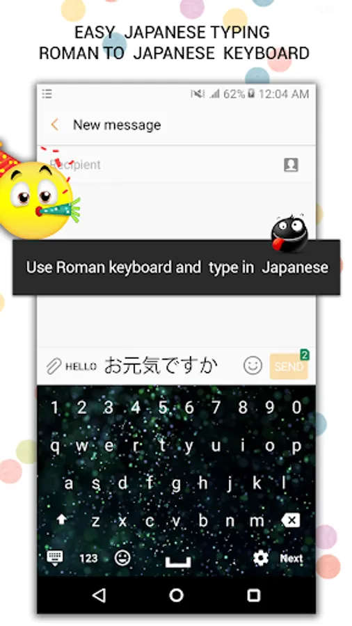 Easy Japanese typing keyboard – A special keyboard for the Japanese lovers who wan to use Japanese through default English keyboard. Now you can chat on social media . Its easy to use and not necessary to change keyboard setting of keyboard. You write in Roman and easy Japanese keyboard change in to Japanese. You can also choose keyboard themes which you like most. You can also buy your best theme.