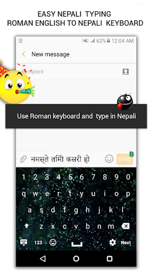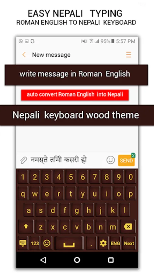 Easy Nepali typing keyboard – A special keyboard for the Nepali lovers who wan to use Nepali through default English keyboard. Now you can chat on social media . Its easy to use and not necessary to change keyboard setting of keyboard. You write in Roman and easy Nepali keyboard change in to Nepali . You can also choose keyboard themes which you like most. You can also buy your best theme.