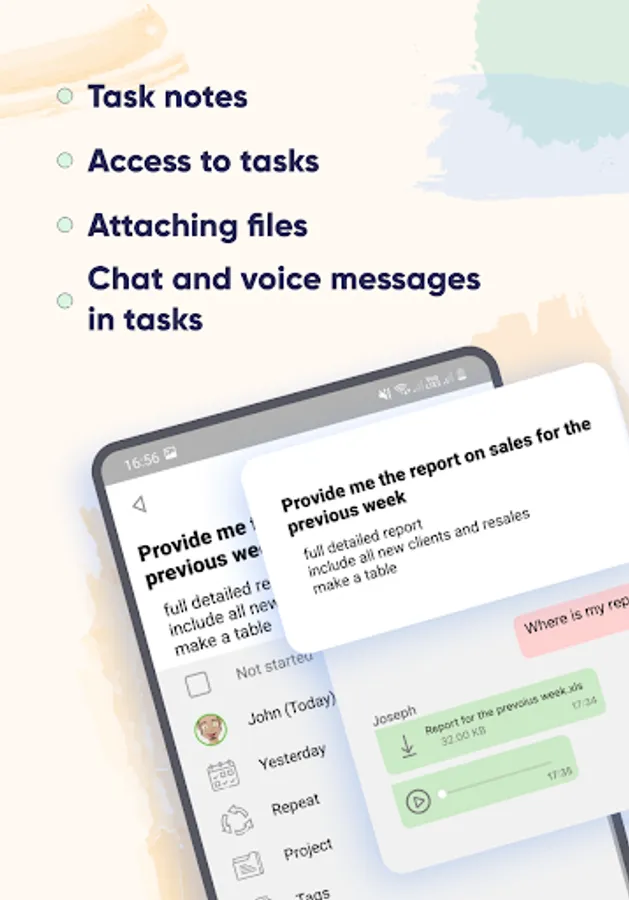 • Attach files of any extension to tasks to always have everything you need with you