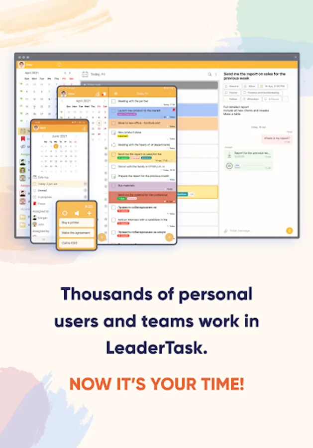 ✅ We are glad that you are joining the community of effective people who achieve their goals and use LeaderTask for self-organization! Control the chaos in your personal and work affairs.