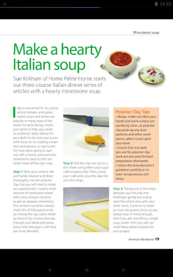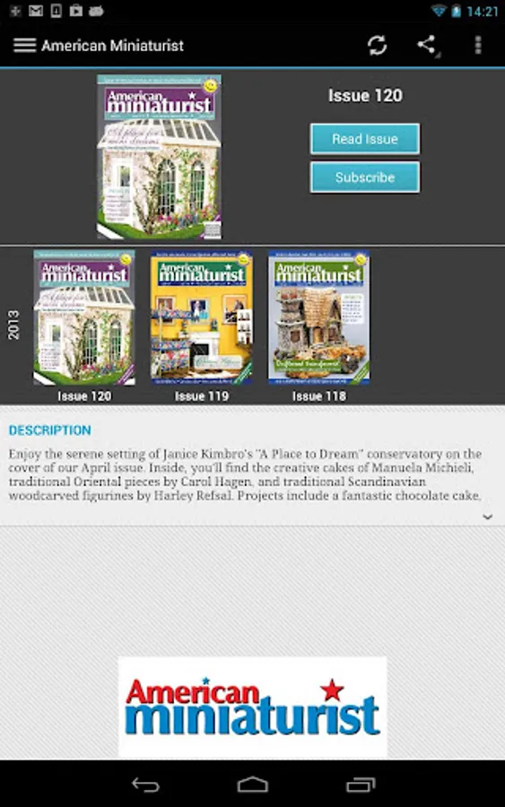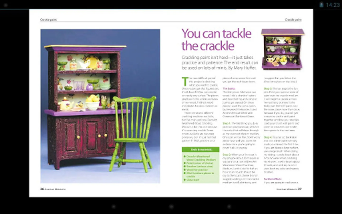 American Miniaturist is one of America's favorite mini magazines. Each issue is filled to the brim with step-by-step projects, interesting articles, and exciting regular features like mini cut-outs, news, national show updates, reader letters, and great contests and giveaways. This monthly magazine features 100 glossy pages and beautiful, full-color photos.