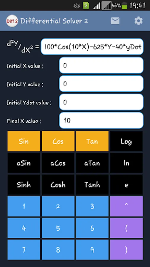 • Based on capability and limitations of Android system the maximum difference in initial and final X for “Calculate”, “Plot” and “Plot yDot” as fixed as “50”, “30” and “30” respectively. For Y and dY/dX at a range greater than 50, use the step process described above. (For larger ranger of 200 and 100 for calculation and plotting, Please try Paid App)