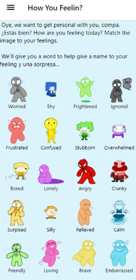 With Mindbreeze, we have different icons and parts of the app that has different feelings and emotions. Just click on one that has the right emotion that’s like yours and see how we can help you, and you can help yourself.