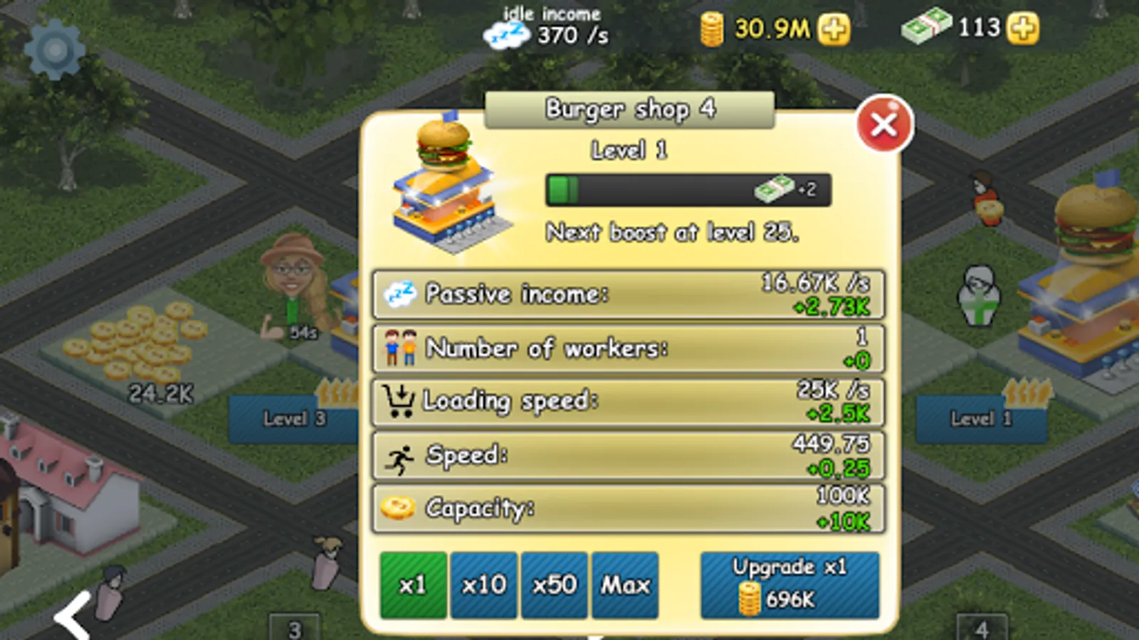 It is a real tycoon game where you could build your restaurant corporation. Come up with your own ideal strategy and become the king of “Fast food” with maximum profit!
