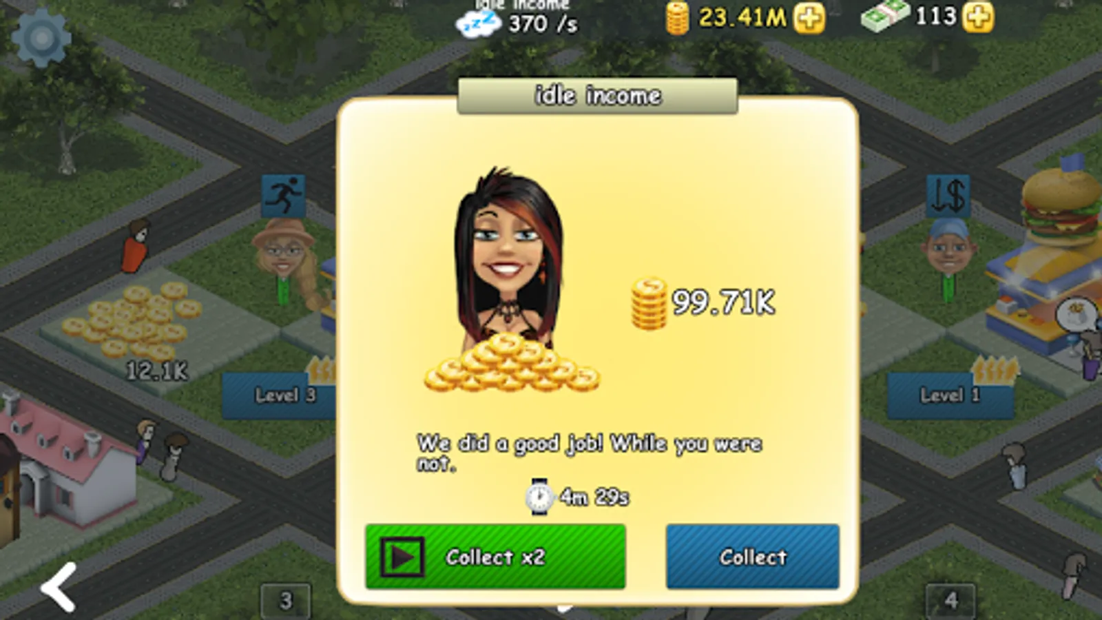 - you could spend all your passive income to improve your business and by so increase the profits brought, this allows you not to spend all your day on the game but enter it for a short time and you will not lose feeling of progress in the game