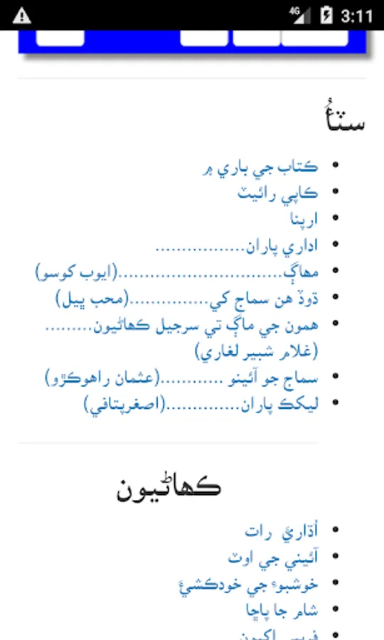 سنڌ سلامت جي سموري سٿ جو ٿورائيتو آهيان خاص طور سائين رشيد صاحب جو. جن هي ڪم ڪرڻ لاءِ منهنجي حوصله افزائي ڪئي.. دوستو هن ڪتاب جو فريم ورڪ ساڳي سنڌ سلامت ڪتاب گھر جي اپليڪيشن جهڙو آهي.. اميد ته جن دوستن وٽ موبائيل ۾ اسٽوريج جو اِشو آهي. اهي سنگل ڪتاب ڊائونلوڊ ڪري سگھندا...
