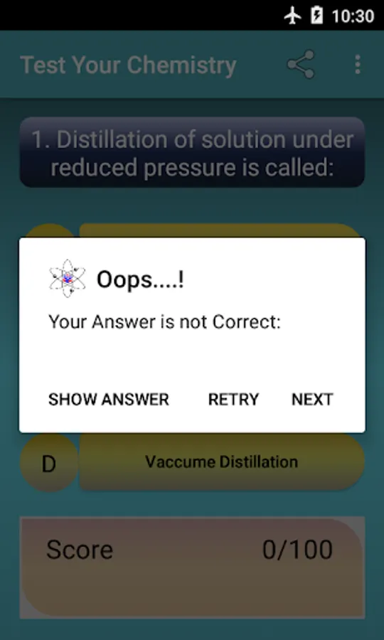 If your answer correct you pass to next question but if you don't know correct answer you can press "Show Answer "Button app will show you correct answer..