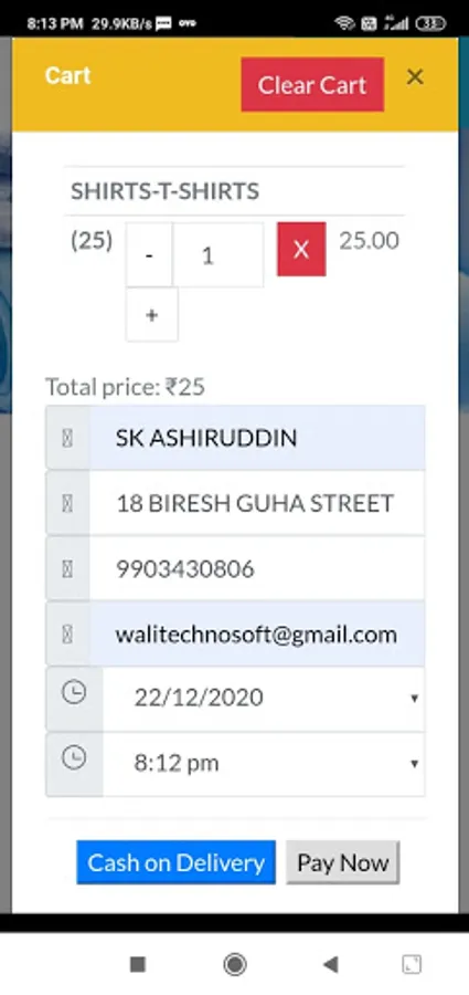 Quick order place Cart on startup Apps