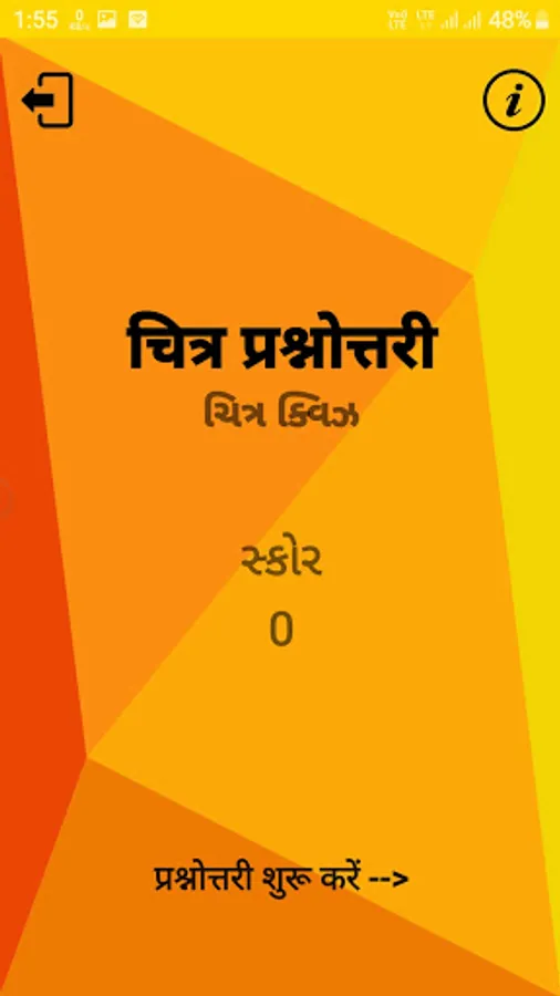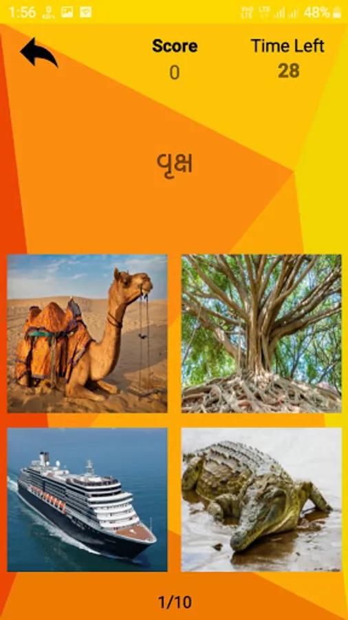 This application contains 10 questions in gujarati having pictures as their options and correct option is the picture related to the word in the specific question.